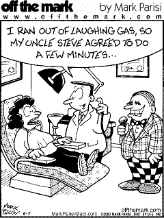 The time has come — my appendectomy. All my fears of dying on the operating table come back as a second wave and I beg the anesthesiologist to be sedated. He happily obliges and a few seconds after the injection, as I am wheeled into the operating room, I am blissfully giggling, then laughing hysterically, until I completely pass out. The last thing I remember is looking at the operating tools and, in a punch-drunk snicker, asking the doctor if they were going to slice me open with that impressive toolkit.